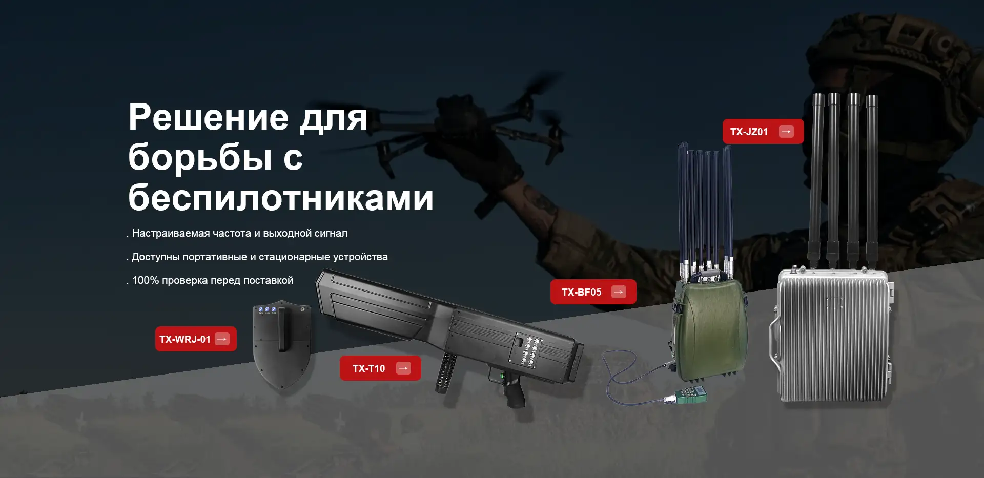 Jammeren er en sentral del av antidroneutstyr. Ved montering av moduler kan jamming-systemet forstyrre driften av dronen, samt med GPS-navigasjon. Dessuten kan den brukes på telefonsignaljamming-enheter, Wi-Fi-signaljamming-enheter og GPS-signaljamming-enheter.